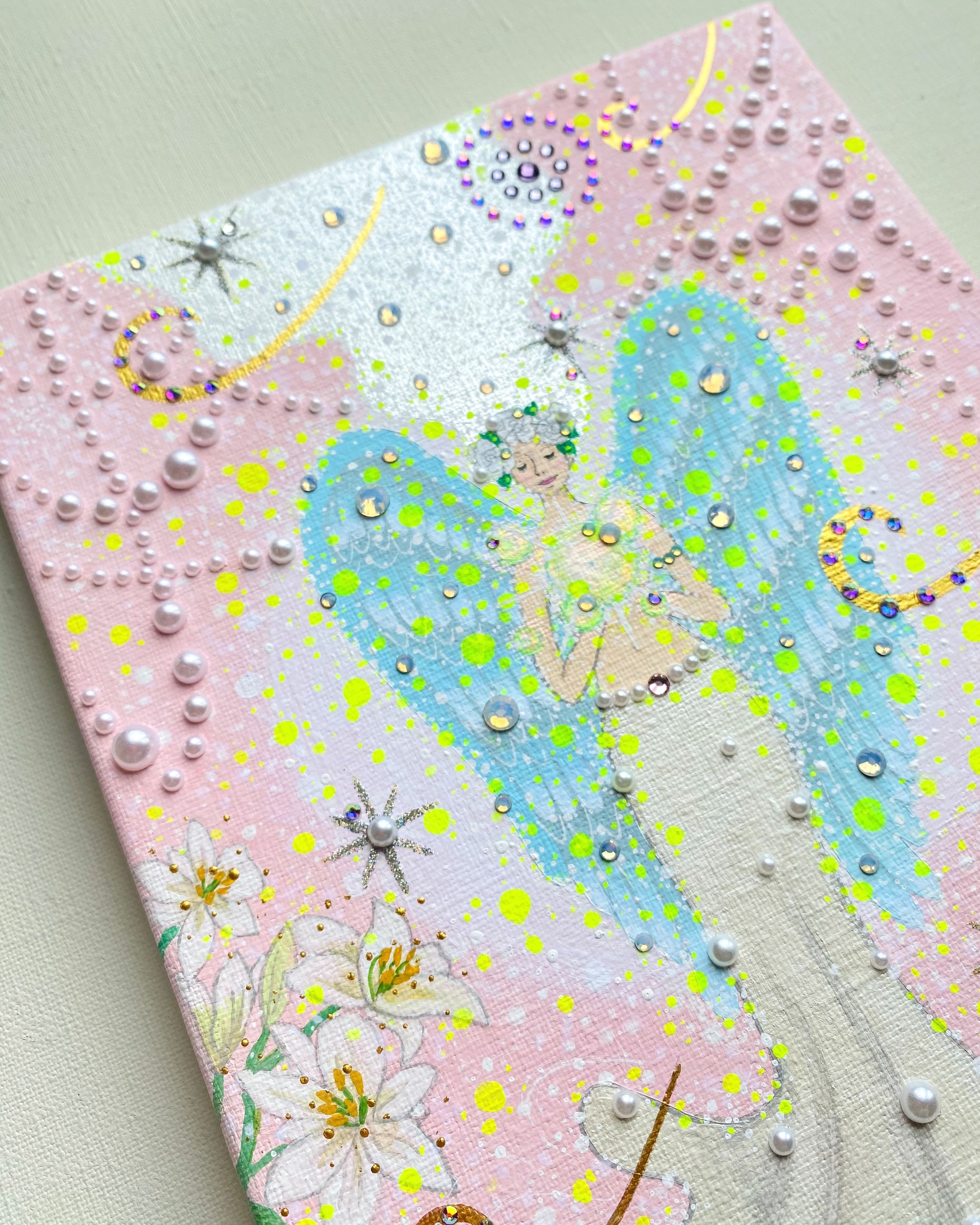 ハートがどんどん輝き、天使の光が増している姿を描きました。